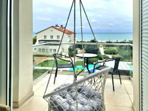 Наслаждайтесь видом моря прямо с балкона — там уютная мебель и подвесной качель; сможете любоваться морем и с дивана, и из кухни, и даже лёжа на кровати. Каждый вечер — уникальное шоу поющих фонтанов прямо из студии.