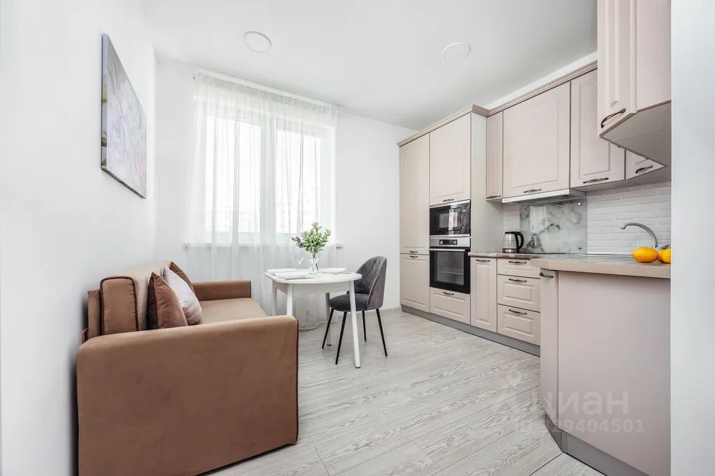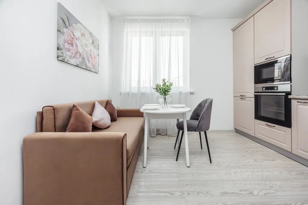 Кухня оснащена всем необходимым: варочная панель, холодильник, эл.чайник, посудомоечная машина, посуда и кухонная утварь, Обеденный стол, диван-кровать.