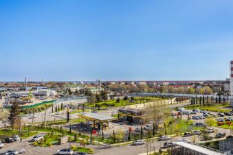 От аэропорта до жилого комплекса ехать 15 минут. Рядом с домом есть магазины - Пятерочка, Магнит, в шаговой доступности Казачий рынок. Также продукты можно заказать в магазине ВкусВилл, Сбермаркет, Деливери, Самокат.