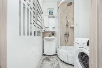 Совмещённый санузел с душевой кабиной, стиральной машиной, феном.
