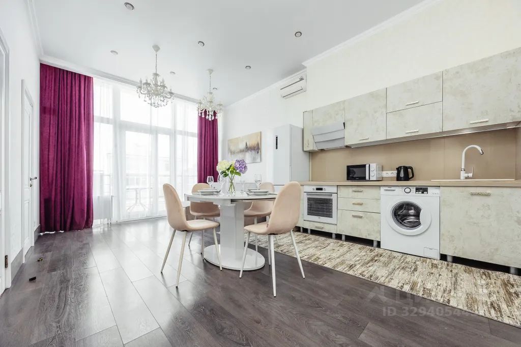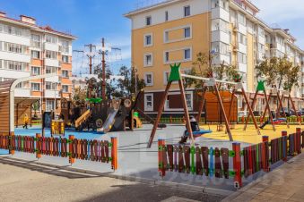 Современная трёхкомнатная квартира площадью 77 м² расположена на третьем этаже 4-этажного дома с балконом и лоджией, в тихом зелёном квартале федеральной территории Сириус.