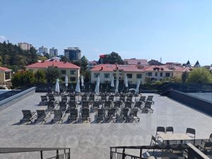 Выход с этажа корпуса сразу в зону отдыха с бассейном.