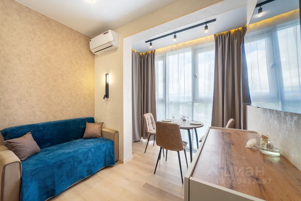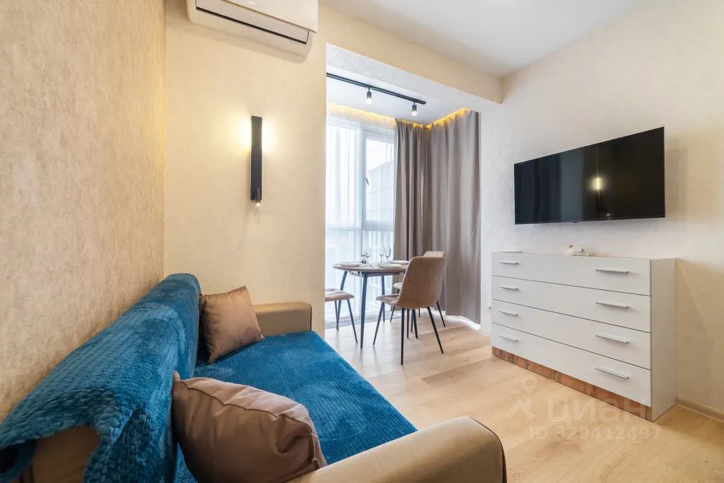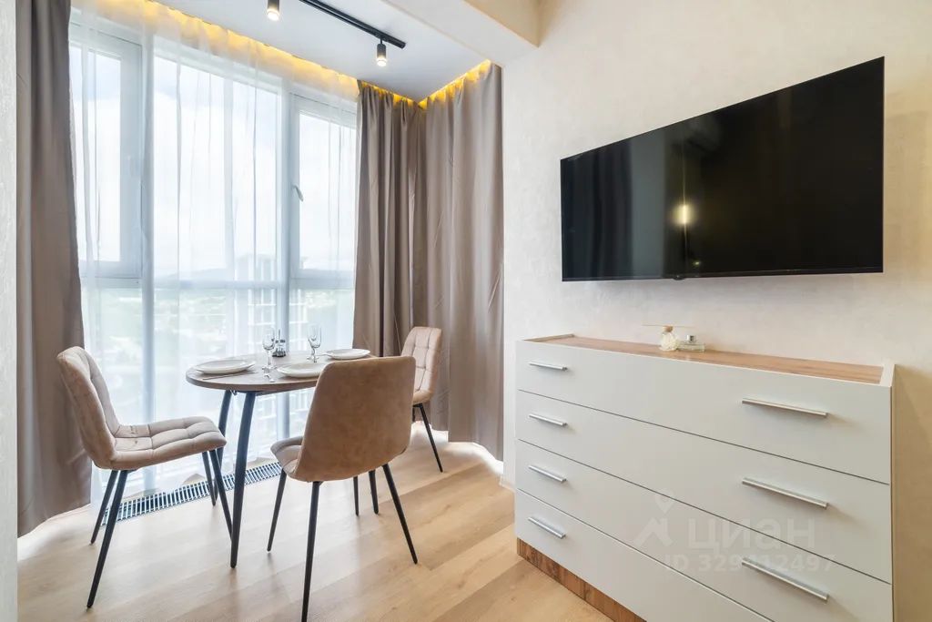 Стильная квартира с интересными элементами декора, панорамным видом и дизайнерским ремонтом площадью 26 м² в жилом комплексе сочи парк. Идеально для отдыха - курортная часть города, удобная транспортная доступность и развязка