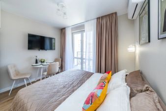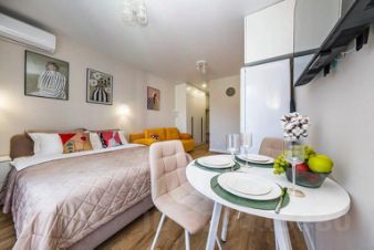 В поисках домашнего уюта: апартаменты "Апартаменты Уютная Дизайнерская Студия в Сочи для Компании из 4-х Человек" расположены в Сочи. Эти апартаменты находятся в 18 км от центра города. Рядом с апартаментами можно прогуляться. Неподалёку: Смотровая башня горы Ахун, Олимпийский парк и Сочинский дендрарий.