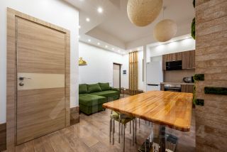 Просторная квартира площадью 80 м² в тихом и зелёном районе Сириуса, расположенная в цокольном этаже нового жилого дома в 100 метрах от моря.