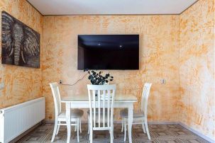 Современные удобства: Кухня гостиная оборудована ЖК-телевизором, бесплатным Wi-Fi, имеется кондиционер. Кухня полностью укомплектована: чайник, кофеварка, холодильник, микроволновая печь, варочная панель, духовой шкаф, а также вся необходимая посуда и столовые приборы. Две изолированные комнаты с отдельными спальными местами.