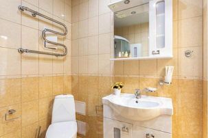 Комфортный отдых: В вашем распоряжении фен, утюг, гладильная доска, чистое постельное белье и полотенца. В санузле душевая кабина, раковина с зеркалом, унитаз и стиральная машина, а также косметические принадлежности.