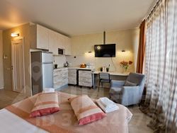 Для бронирования предлагаются номера различных категорий: Стандарт, Стандарт мансарда, Студия и Апартаменты. Номера оснащены комфортабельной мебелью, Wi-Fi, кондиционером, телефоном, телевизором, мини-холодильником, удобной рабочей зоной и собственной ванной комнатой.