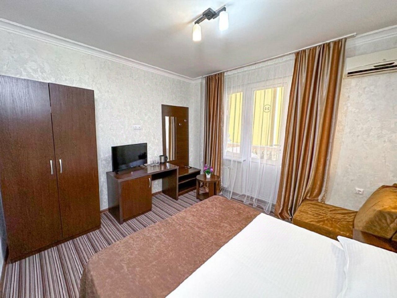 Отель занимает озелененную благоустроенную территорию, разместившуюся среди малоэтажной застройки. Жилой фонд, способный единовременно разместить более 80 человек, предлагает гостям двух- и четырехместные номера Стандарт. Каждая комната оснащена индивидуальным санузлом, есть телевизор, кондиционер и холодильник, в некоторых номерах имеются балконы. На территории гостиницы открыта столовая, где отдыхающие могут заказать трехразовое питание. Инфраструктура: бассейн (открытый: 10м х 4м, вода пресная, подогреваемый, пользование бассейном, входит в стоимость, работает сезонно). Услуги прачечной, глажка, стирка, интернет, wi-fi в номера, на территории.