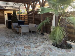 В доме — три спальни, уютная гостиная и зона отдыха из натурального дерева с выходом на террасу и барбекю-зону.