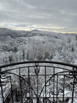 2 ЭТАЖ (попадаете на него с дороги в дом) : прихожая, лестница вниз на 1 этаж и выход в сад, балкон, винтовая лестница на 3 этаж, 2 отдельные спальни с двуспальными кроватями с ортопедическими матрасами 140х200 см, санузел с душем.