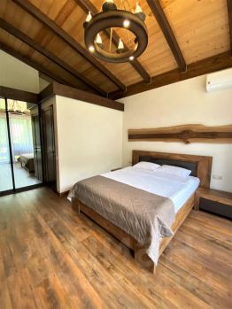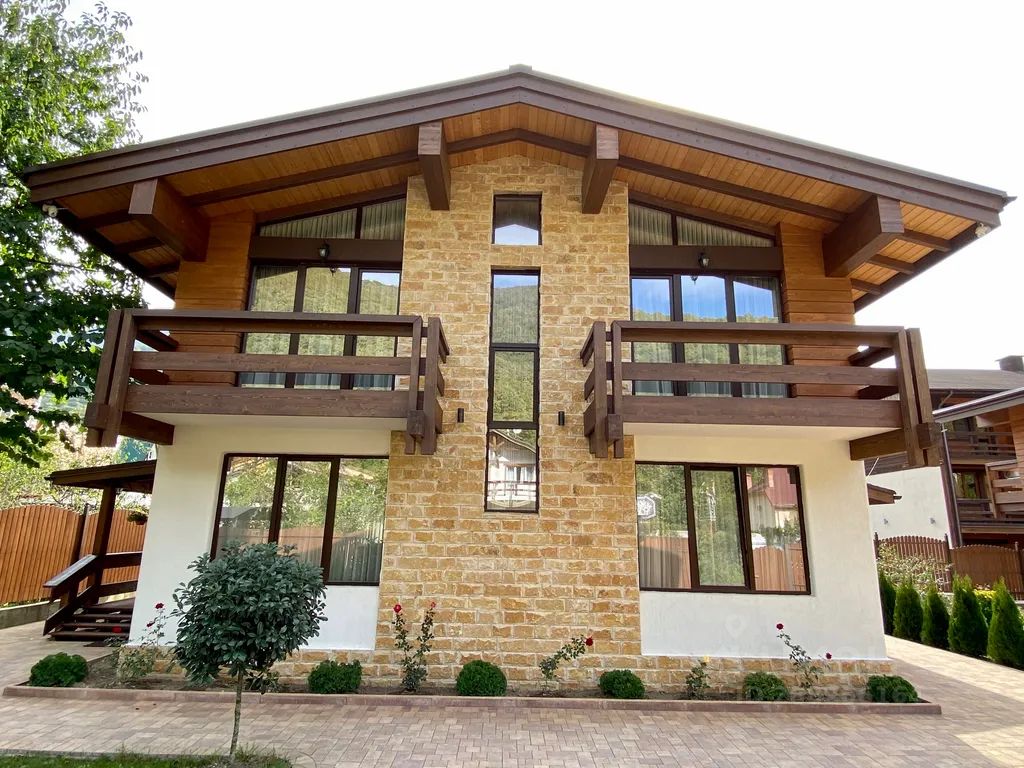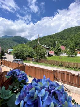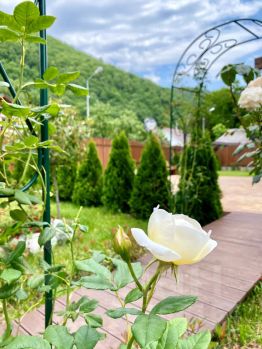 Вилла "Счастья" - это комплекс из двух коттеджей-шале для полноценного семейного отдыха в самом сердце Эсто-садка, которые расположены в стороне от основной дороги, всего в 200 метрах от главных развлечений курорта. Это дает гостям виллы комфортный доступ к окружающей инфраструктуре и совмещает его с тишиной и уютом. В каждом коттедже: четыре спальные комнаты с двуспальными кроватями размера "Queen-size" и четыре полностью оснащенных сан.узла. Первая спальня расположена на первом этаже, а три последующих имеют собственные балконы с видом на горы и находятся на втором этаже. Все спальни оборудованы телевизорами, wi-fi интернетом, сплит-системами, москитными сетками и тёплым полом. В гостиной находится зона отдыха с обеденным столом. А спальные места в гостиной для двух гостей представлены просторным ортопедическим двуспальным диваном. Оснащение кухни даст вам необходимый уровень комфорта, к которому вы так привыкли дома, для вашего удобства здесь имеются: индукционная плита, духовой шкаф, посудомоечная машина, холодильник, микроволновая печь, тостер, блендер, соковыжималка для цитрусовых, чайник, а также кофемашина фирмы "Saeco", которую особенно ценят любители кофе, в частности, за их керамические кофемолки. Они не шумят, и вкус кофейного напитка получается лучше. В распоряжении гостей виллы имеется собственная сауна. А помимо неё, вас ожидают: халаты, тапочки, а также традиционные гостиничные косметические наборы, включающие шампунь, кондиционер, гель для душа и зубной набор. На территории есть зеленый сад, зона барбекю и закрытая беседка с мебелью из ротанга Базовая вместимость каждого коттеджа - десять гостей. Дополнительное размещение гостей возможно по согласованию. Если вы прибываете к нам на автомобиле, то для вашего удобства есть бесплатная парковка. Мы готовы ответить на все ваши вопросы по объекту, пожалуйста, обращайтесь!