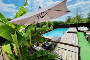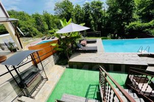 Экологичный дом из Сруба с бассейном расположен в чистом и тихом районе - с.Верхнеармянская Хобза и окружен Сочинским национальным парком.