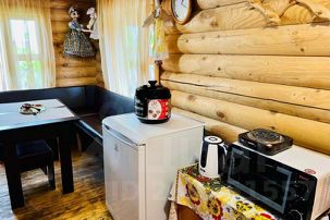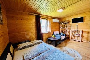Домик оснащен всем необходимым для комфортного пребывания и настоящего отдыха душой и телом: Двуспальная кровать, двухъярусная кровать для детей.