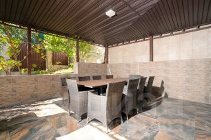 - Зона барбекю с мангалом и необходимыми принадлежностями
