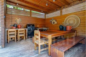 -деревянная беседка с зоной барбекю и газовым грилем ресторанного уровня