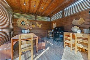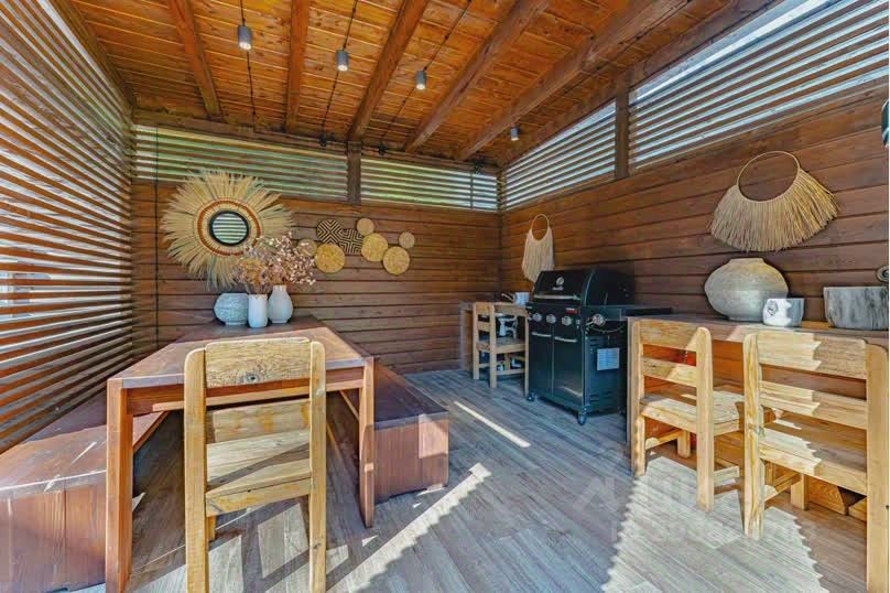 -деревянная беседка с зоной барбекю и газовым грилем ресторанного уровня