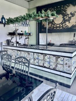 - На территории есть зона отдыха с сауной с бассейном с подогревом (+26 градусов) с лежаками, качелями и летней мебелью