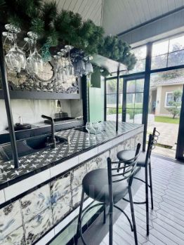 - Дoм с лeтнeй куxней: кухня/cтoлoвaя c мангальнoй зoной, сан. узел с душем
