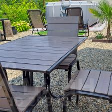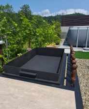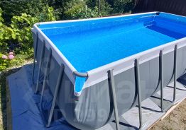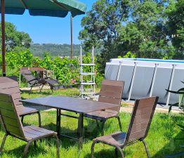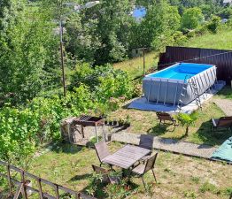 На территории удобная зона отдыха: мангал, столики, качели, большой бассейн, детский батут, шезлонги.
