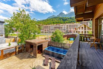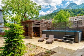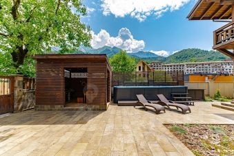 -открытый подогреваемый джакузи с видом на горы вместительностью 10 человек
