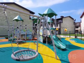 Красивая ухоженная закрытая и охраняемая территория жилого комплекса, в пределах которой есть детская площадка, спортивная площадка с тренажерами, теннисный корт для большого тенниса, столы для настольного тенниса, волейбольная и баскетбольная площадка, скейт-площадка.
