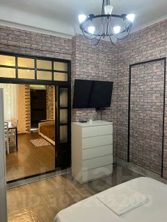 1 комната: гостиная - кухня: газ плита, микроволновая печь, холодильник, эл. чайник, вся необходимая посуда, кухонный гарнитур, стол, диван-кровать, сплитсистема.