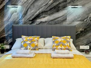 Новый дизайнерский ремонт, есть всё для комфортного отдыха: 2 кондиционера, тёплые полы в каждой комнате, 3 телевизора со smart tv, современная мебель, 2 двуспальные кровати и диван-кровать, оборудованная просторная кухня с необходимой посудой и зоной отдыха с диваном, ванная комната с душевой кабиной, wi-fi.