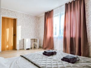 В каждой спальне есть двуспальная кровать и большой шкаф, постельное белье, полотенца. Также в одной из спален односпальное кресло-кровать, в самой большой спальне раскладной диван и смарт-тв.