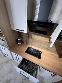 На первом этаже расположена: кухня, столовая, гостинная, душ и с/у! Полотенца, халаты, тапочки, средства личной гигиены пополняются в день приезда. В гостиной огромный круглый стол на 8 персон, плита духовка, посудомоечная машина, кондиционер.