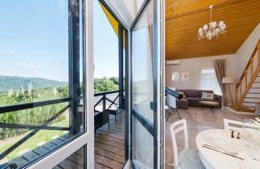 Панорамные окна от пола до потолка - где природа становится частью интерьера.