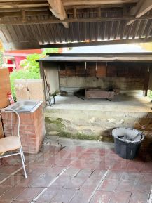 Летняя кухня оборудована раковиной для мытья посуды, двухкомфорочной индукционной плитой, микроволновой печью, электрическим чайником, а так же имеется мангальная зона. Комплект посуды на 9 человек.