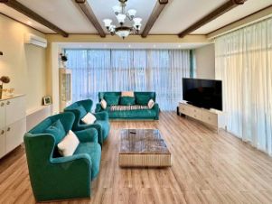 Дом 3-х этажный, с 2 гостиными комнатами, 7 спальнями, 10 санузлами. На втором этаже терраса с зоной солярия, на 2 и 3 этажах вид на море. Полностью укомплектован всем необходимым, посудой, постельным бельем, полотенцами на всех гостей.