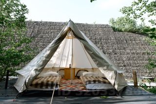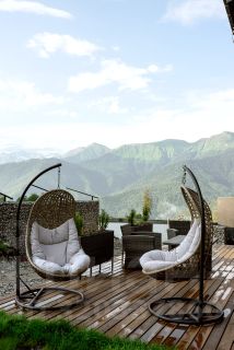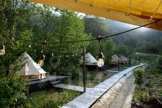 Погрузитесь в атмосферу полного уединения в юрте с панорамным видом на горы и речку — здесь сливаются природа, тишина и комфорт. Просторная юрта выполнена в духе глэмпинга: внутри — уютное спальное место, стильный интерьер, всё необходимое для отдыха на природе без лишнего.