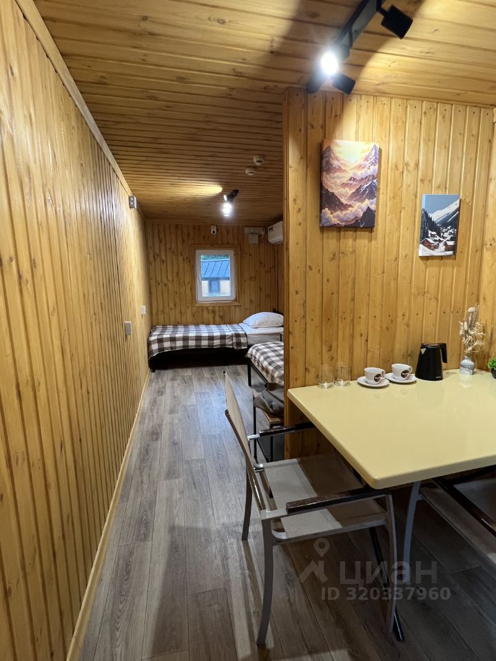 Уютный домик для двоих на высоте 1100 метров над уровнем моря. Внутри: две односпальные кровати, небольшая обеденная зона (стол и 2 стула), кондиционер, тумбочки, вешалки, электрический чайник и минимальный набор посуды.