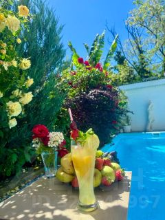 На придомовой территории расположены зона барбекю, зона отдыха, бассейн, парковка на три- четыре машины.