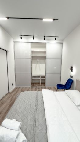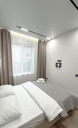 Второй этаж: две спальни с двуспальными ортопедическими матрасами (1,6*2,0), каждая с просторной гардеробной. В каждой спальне свой санузел. Один санузел с душем, другой с ванной.