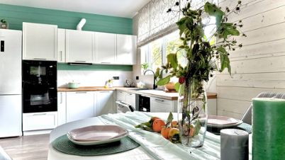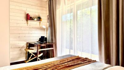 Дом находится у леса, где сразу можно собирать грибы и гулять до белых скал