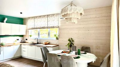 На 2-м этаже 3 комнаты, на первом большая кухня- гостиная.