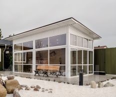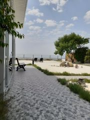 Уютный, просторный, в стиле современного минимализма, панорамные окна с видом на море, просторная терраса и уютная, остекленная мангальная беседка с огромным, из чистого дерева, столом— идеальное место для отдыха с семьёй или друзьями.
