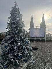 Гостиная: ТВ, огромный раскладной диван (2 спальных места), обеденный стол.
