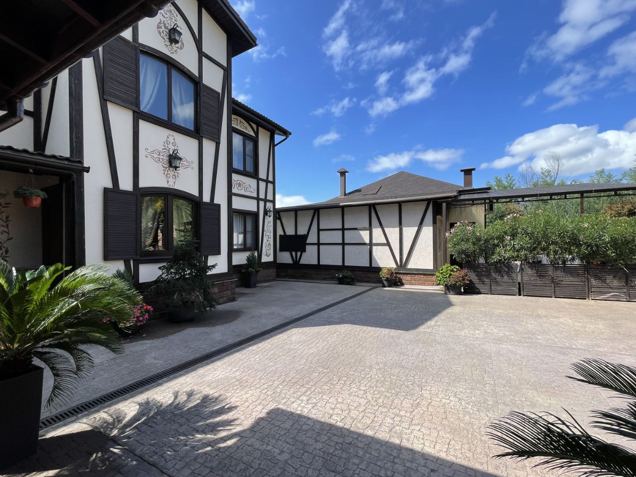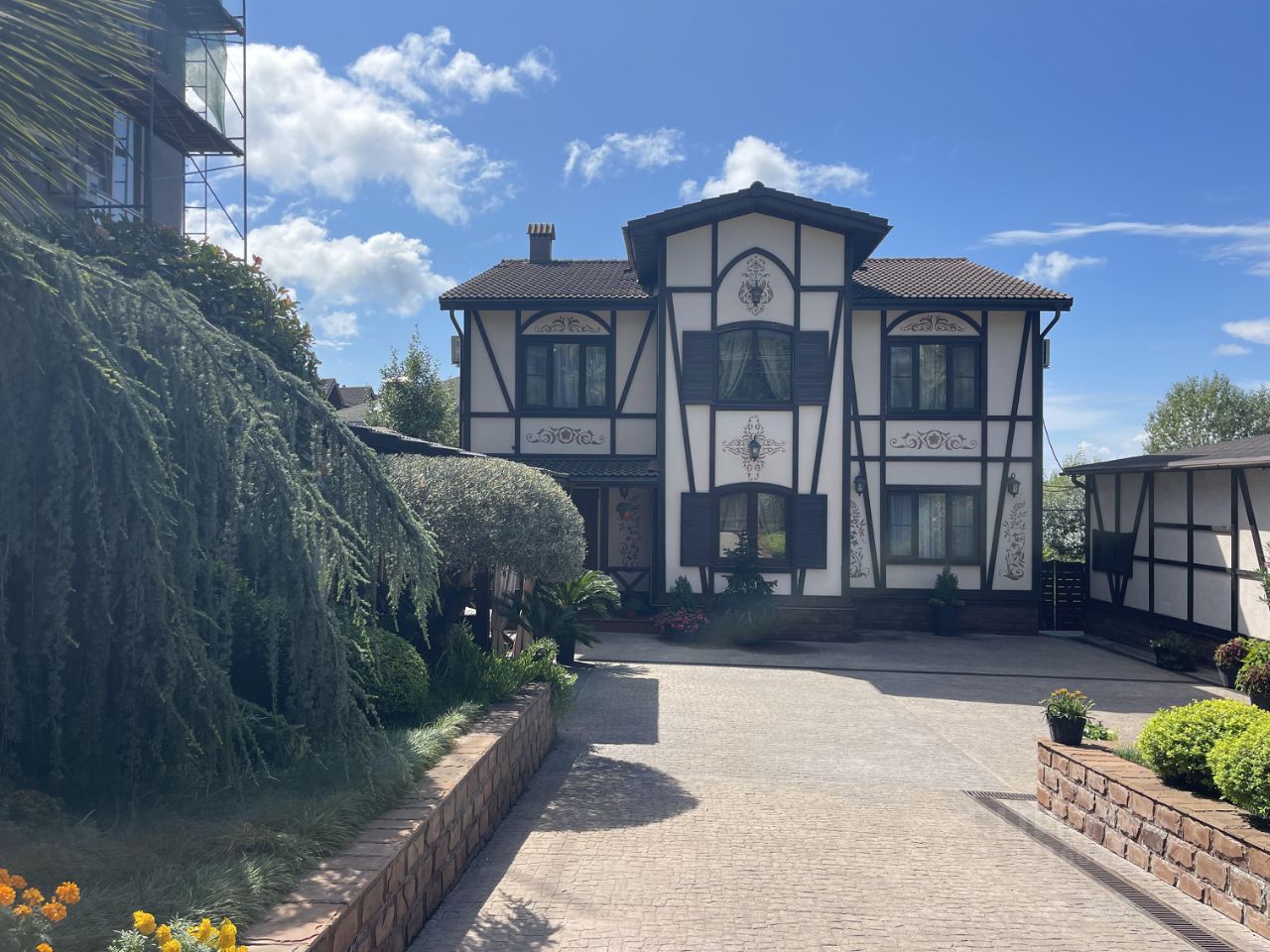 Коттедж выполнен в скандинавском стиле, придомовая территория украшена авторским ландшафтным дизайном. Есть место для отдыха под навесом + мангал.