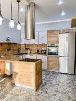в доме есть всё необходимое стиральная машина, посудомоечная машина, фен, телевизоры в каждой комнате, кондиционеры в каждой комнате, тёплые полы с регулировкой температуры в каждой комнате, удобные кровати. 2 санузла (душ и ванна)