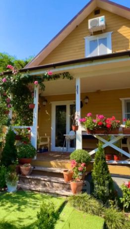 Из гостиной выход на уютную веранду, где можно завтракать по утрам или сидеть с бокалом вина уютными вечерами.