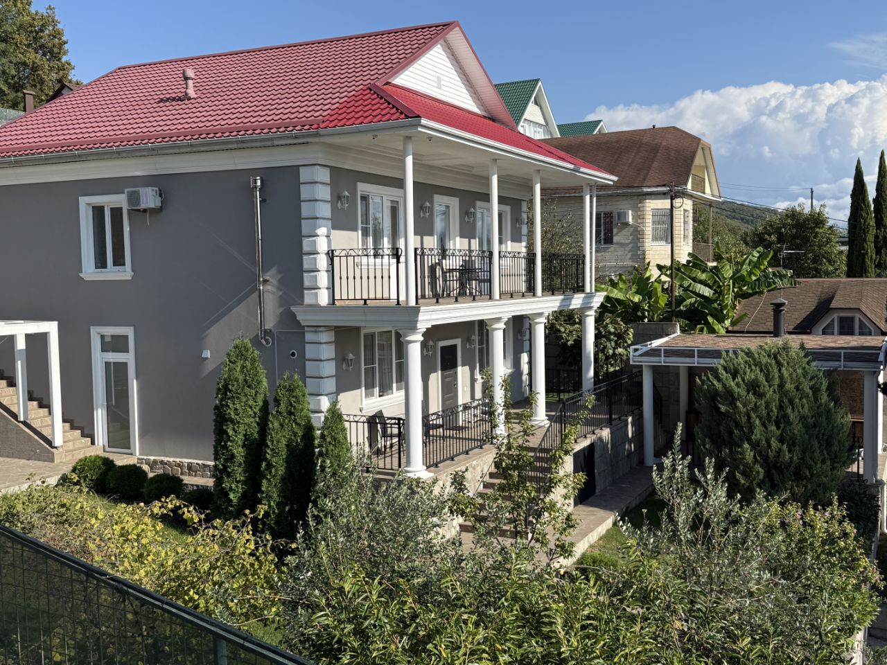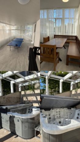 Для уютного и комфортного проживания наших гостей в доме по мимо четырёх спален имеется русская БАНЯ с джакузи во дворе, просторный спортивно - игровой зал с настольным теннисом. Во дворе расположен уютный мангальный дворик с казаном, мангалом, керамическим тандыром и столом. Имеется парковка для автомобилей.