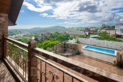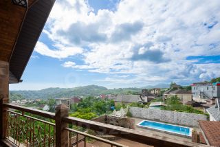 Территория дома облагорожена: открытый подогреваемый бассейн, летняя беседка , летняя закрытая терраса, парковка на четыре автомобиля. С территории открывается вид на город и море.