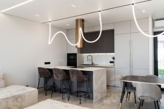 В доме выполнен современный дизайнерский ремонт из натуральных материалов.