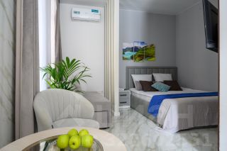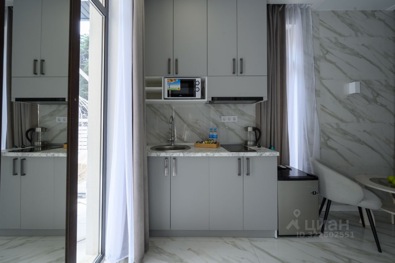 состоит из 2 отдельных студий ( в каждой своя кухня и санузел )