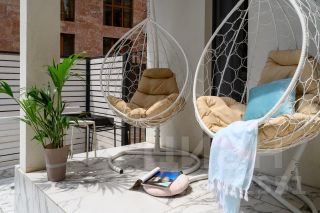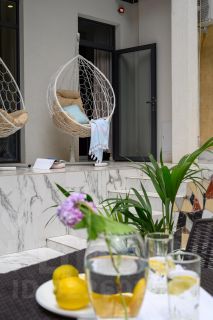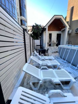 имеется небольшая на территория( мангал, шезлонги, столики )
