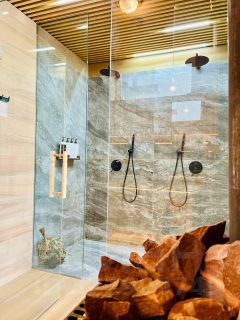 ТРЕТИЙ этаж включает в себя две комнаты с выходом на общую террасу с потрясающими видовыми характеристиками. Также для удобства гостей и их время препровождения на террасе есть небольшая вторая кухня и санузел с душевой кабиной.